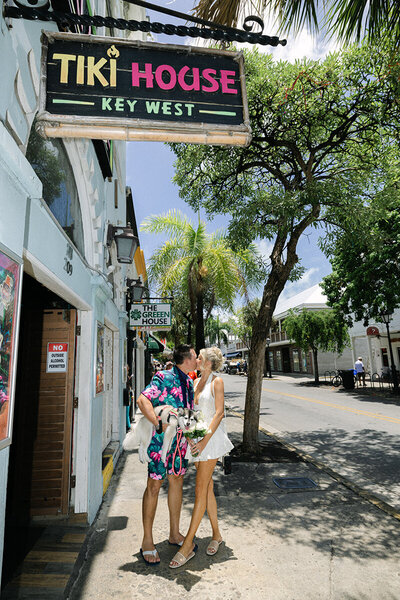 e had to include this wedding as one of our favorite weddings because it was so non-traditional and stunning. RJ + Kali decided to elope quietly on Sunset Key - just the two of them and their dog - and then invite their friends and family to join them in an epic post-ceremony bar crawl and after party. It was a full day affair that began at sunrise and ended well after sunset. Every single element was so perfectly "them", and it was an absolute honor to get a backstage pass to the most spectacular day of their whirlwind lives.